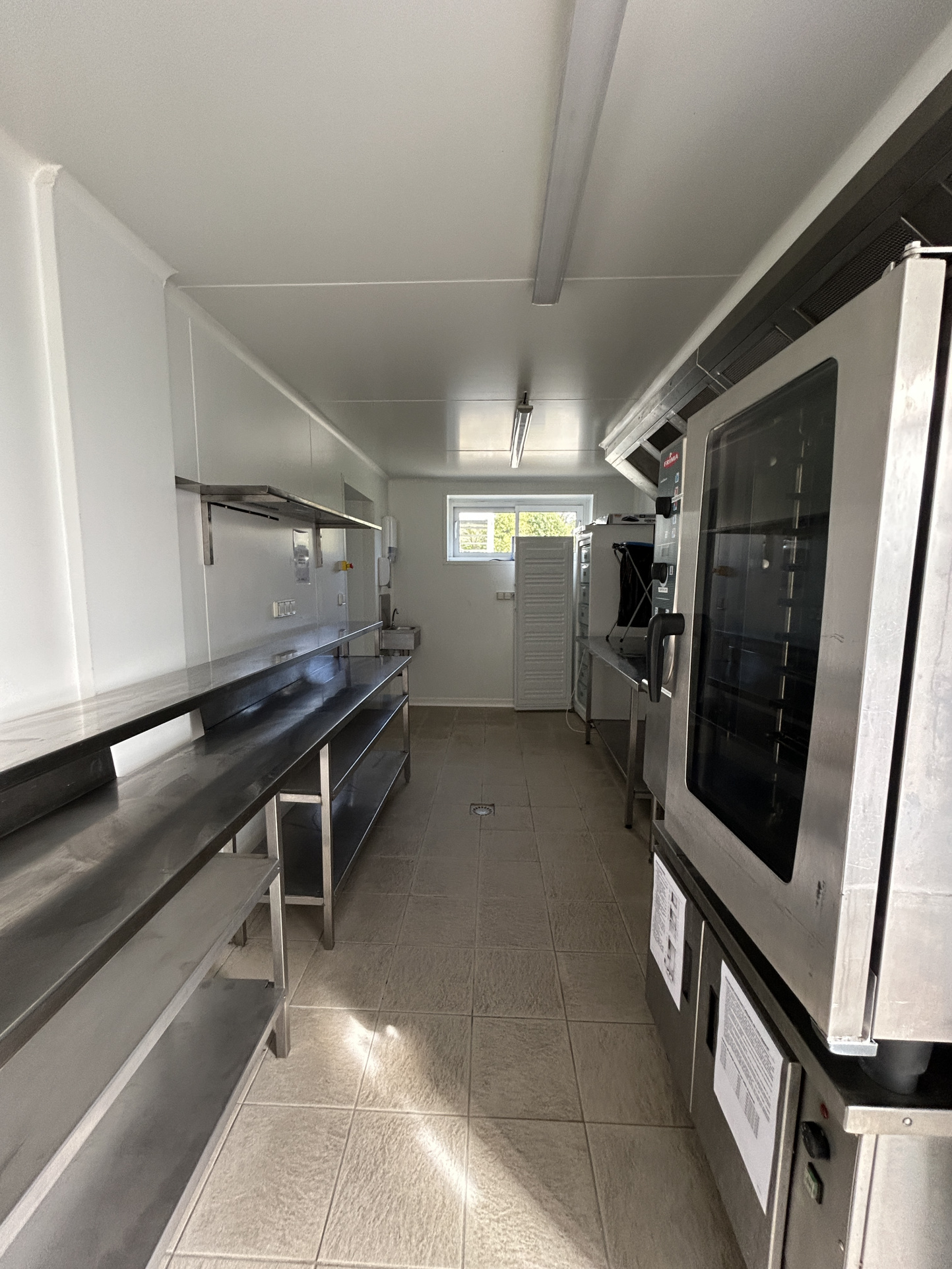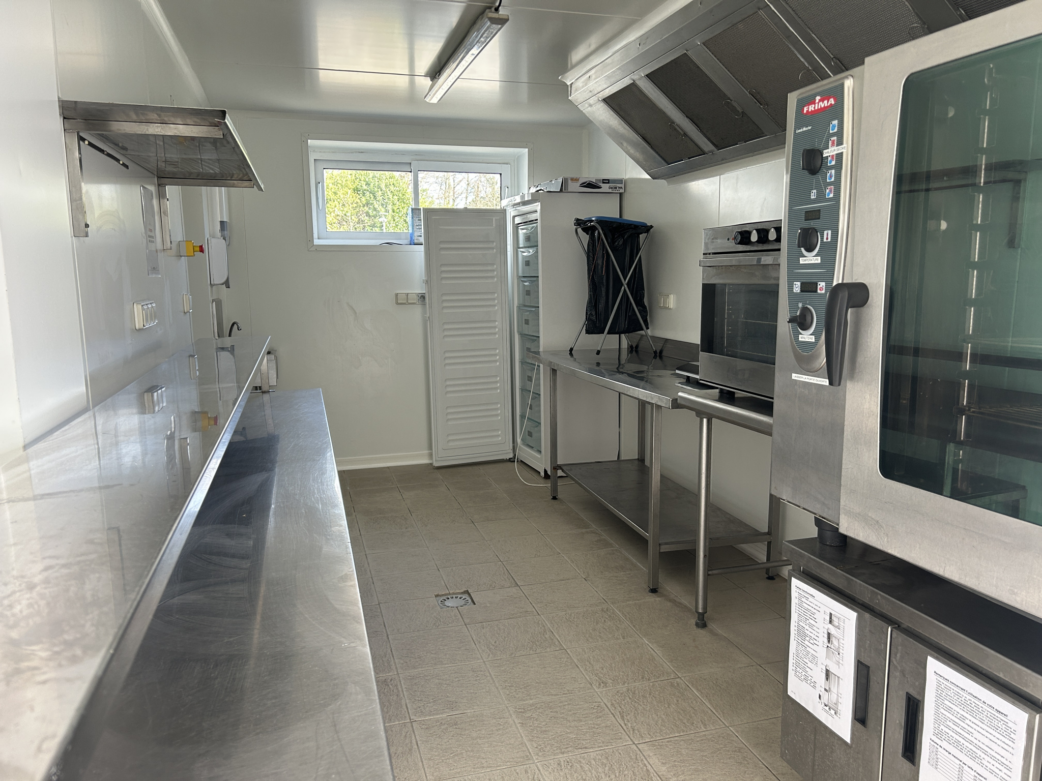 Deux espaces cuisine entièrement équipés, espace plonge et chambre froide.