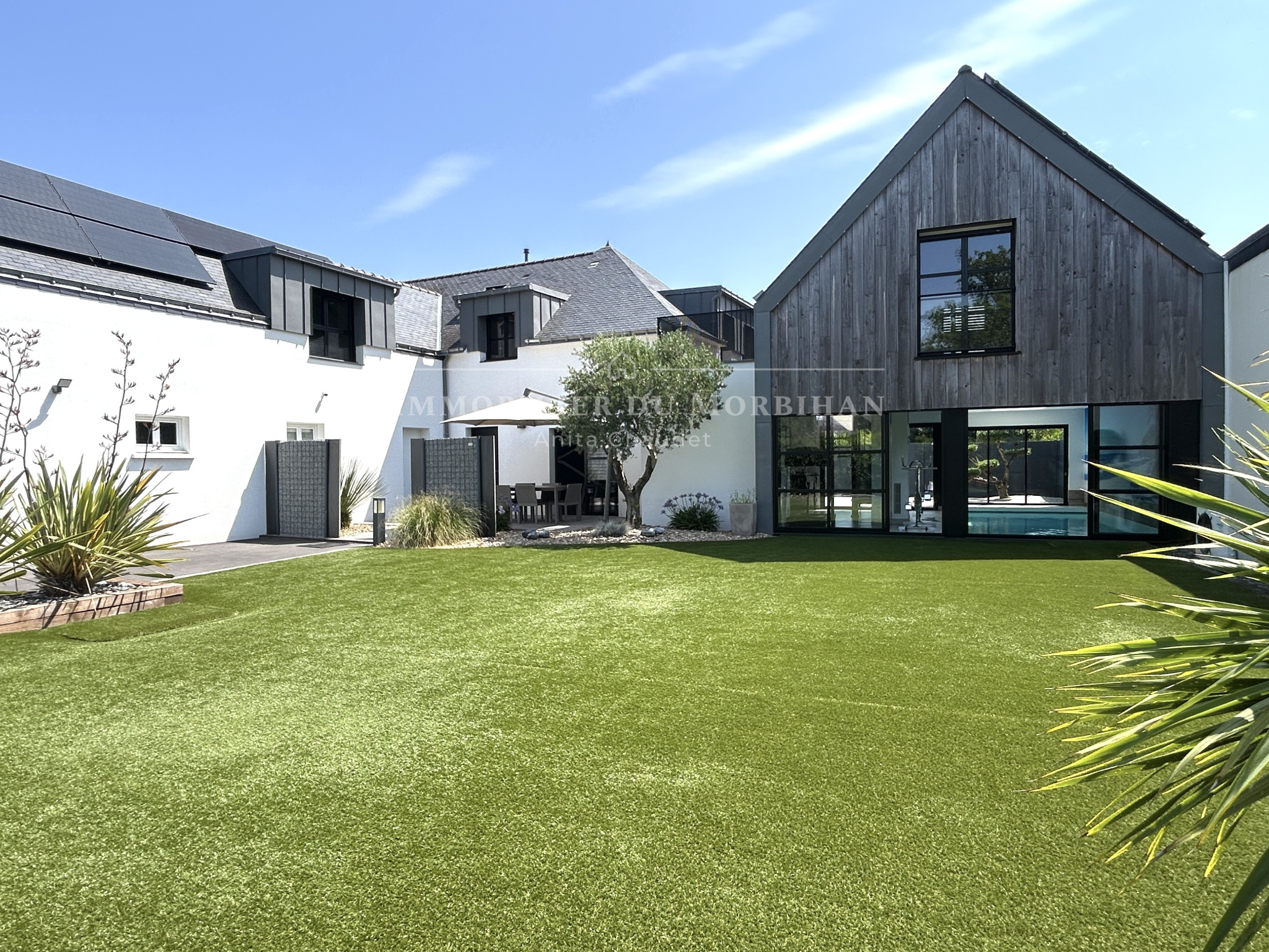 L'Immobilier du Morbihan a le privilège de vous présenter en exclusivité cette remarquable maison contemporaine, nichée au coeur d'un quartier résidentiel prisé de Plescop, à seulement quelques minutes de Vannes.